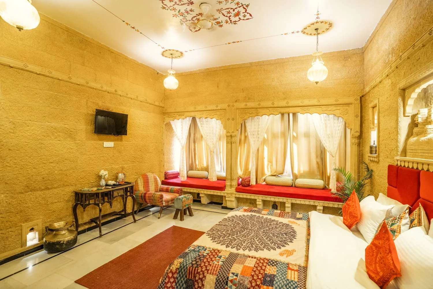 The Deluxe Room offered through Thar Legacy Tour & Travels provides guests with a refined and comfortable accommodation experience in Jaisalmer. Each room is carefully selected from verified partner properties to ensure high standards of cleanliness, comfort, and convenience.